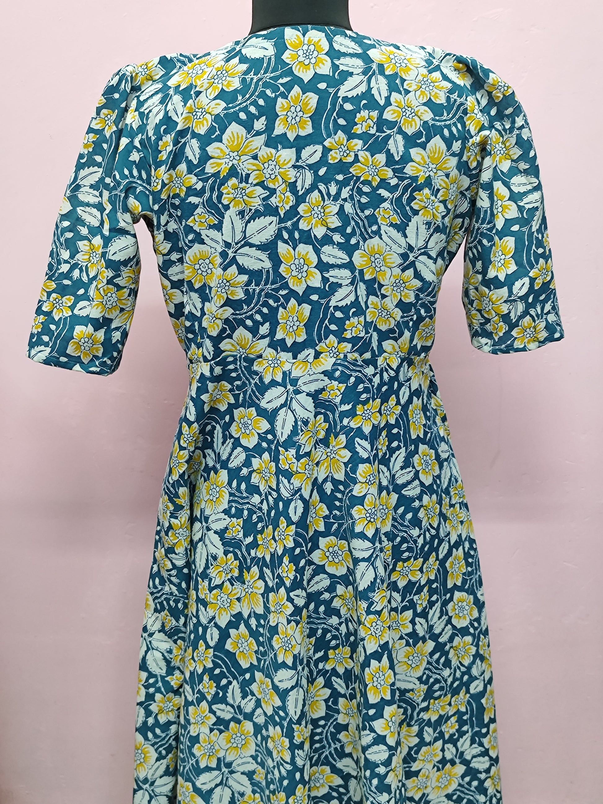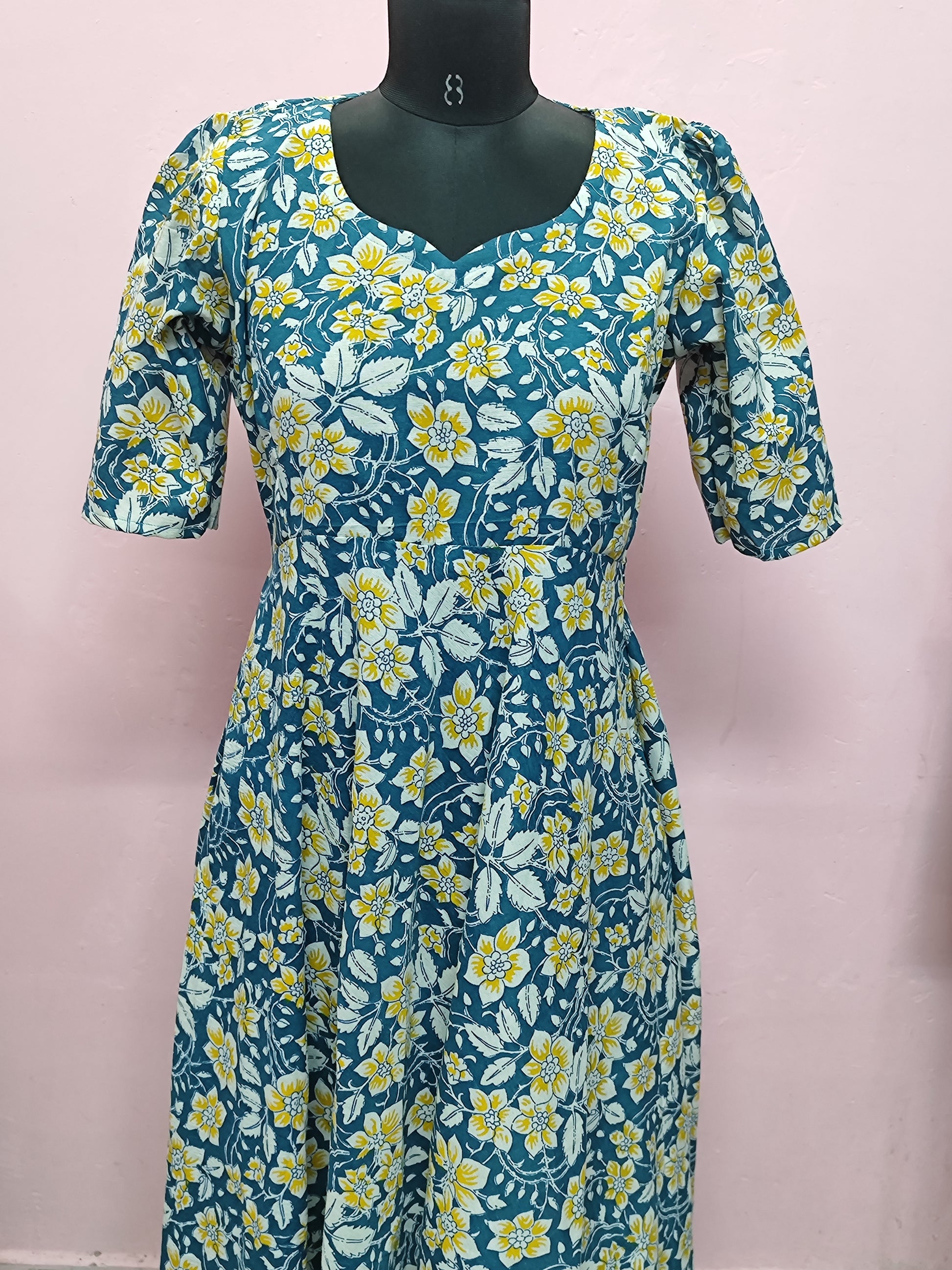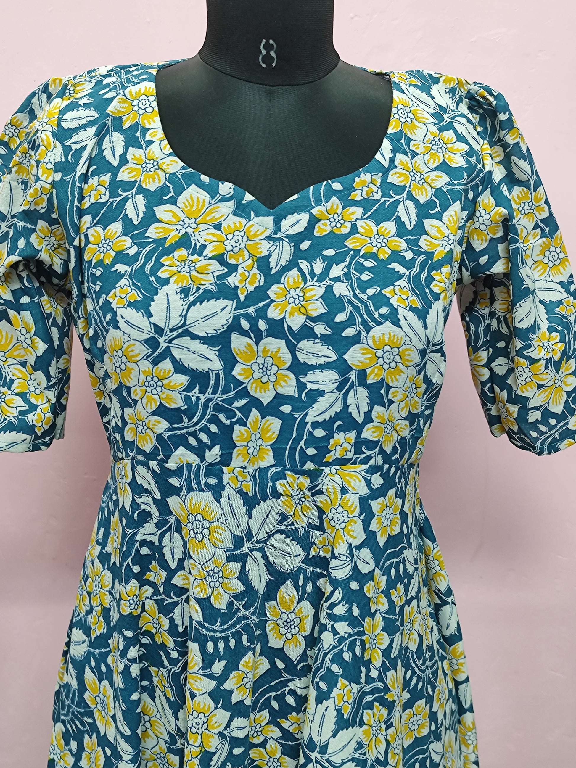 This cotton maxi dress features a leaf neckline and elbow-length sleeves, giving you a graceful, flowy, and effortlessly stylish look. Perfect for brunch, outings, vacations, or everyday wear — pair it with minimal jewelry and sandals for a refined, comfortable fit.